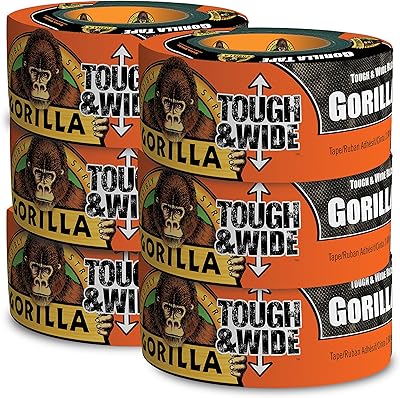 Gorilla Black Tough & Wide Duct Tape, 2.88 x 30 yd, Black, Pack of 6